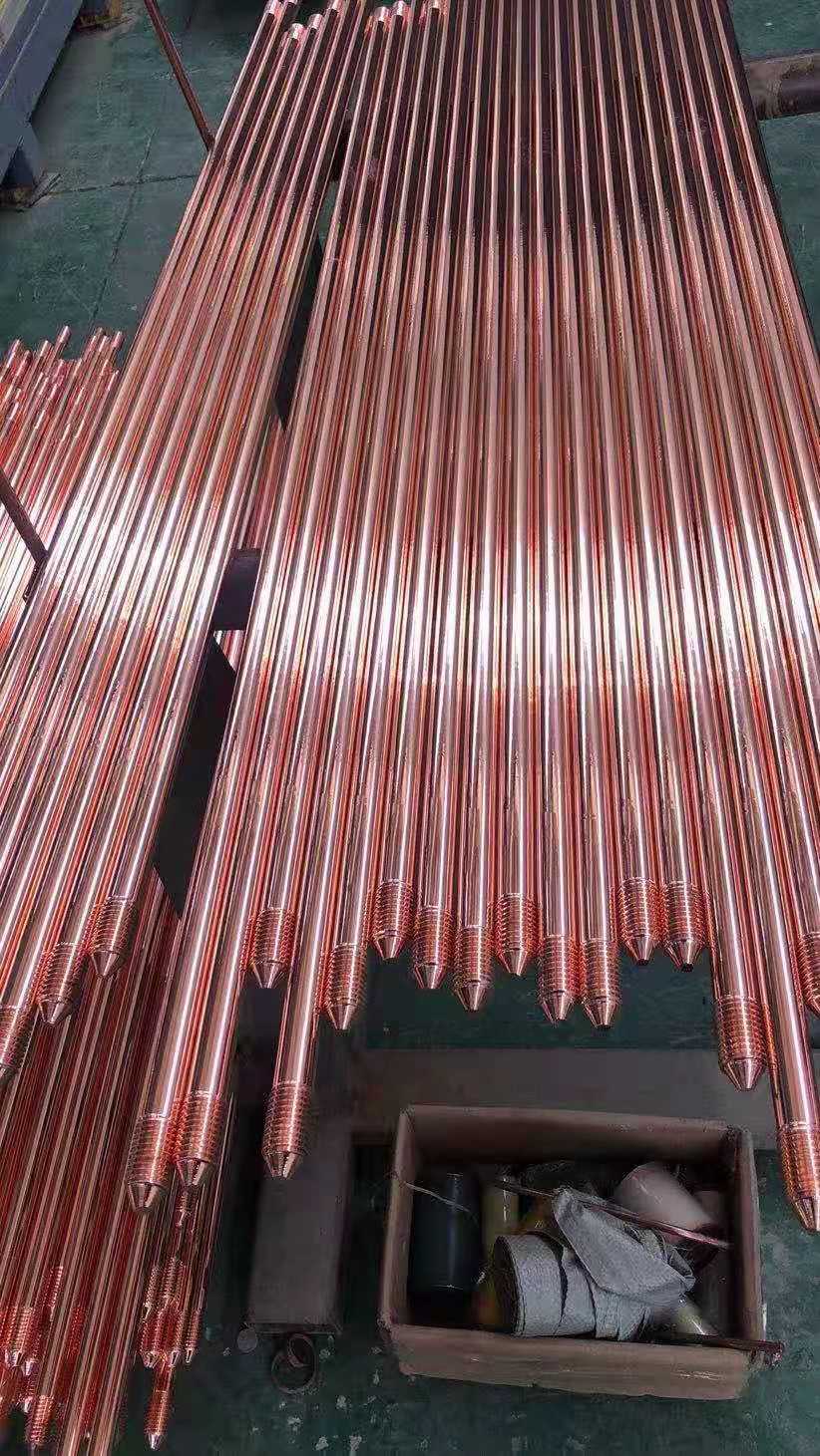 銅包鋼接地極配有同軸連接器、驅(qū)動頭和鉆頭等配套件。根據(jù)不同地質(zhì)及使用要求可以通過采用黃銅同軸連接器(連接螺栓)連接,任意增加鉛包鋼接地極的長度。項端采用驅(qū)動頭(連接螺栓)連接,供棒打深時打擊使用。末端采用鉆頭(連接螺栓)連接,以便于將棒打深。